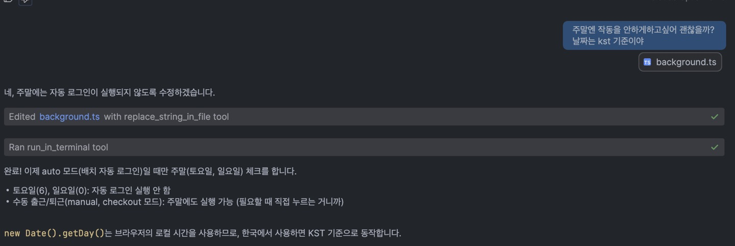 주말엔 자동로그인을 실행하지 않게하기 위해 코드를 수정하고