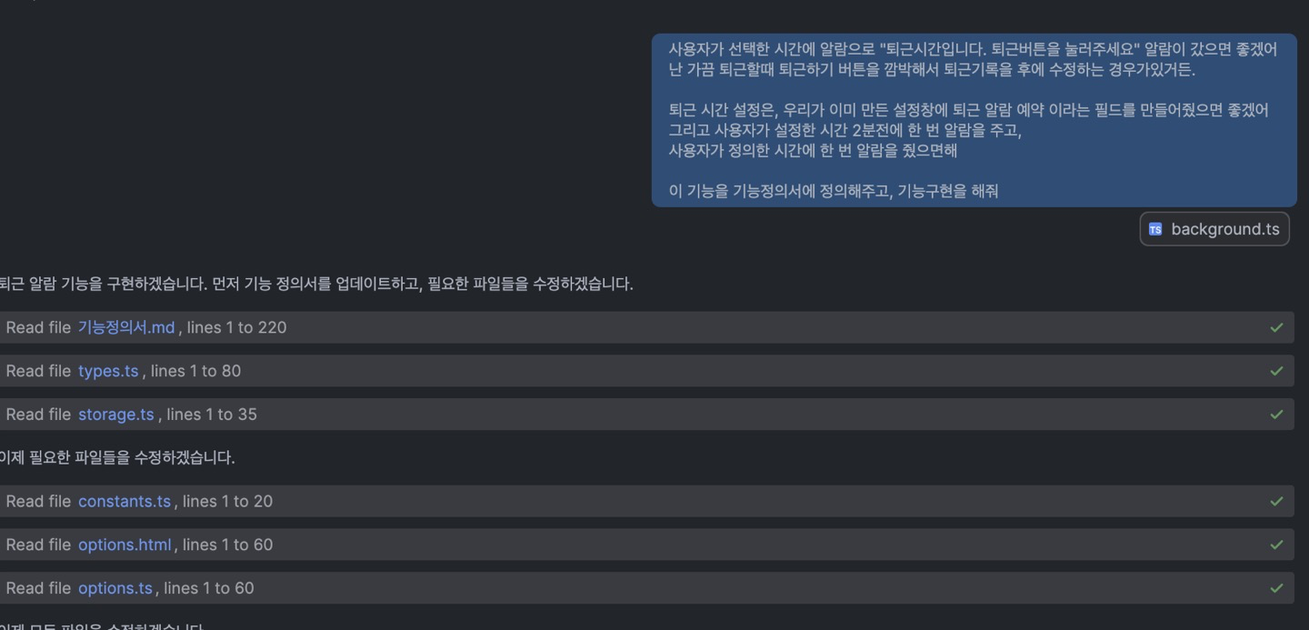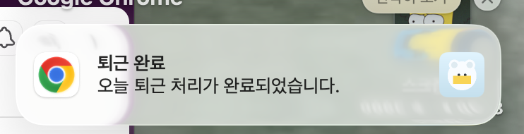 그 후 신나게 개발을 하고 퇴근시간이 되면 퇴근 알람이 뜨고